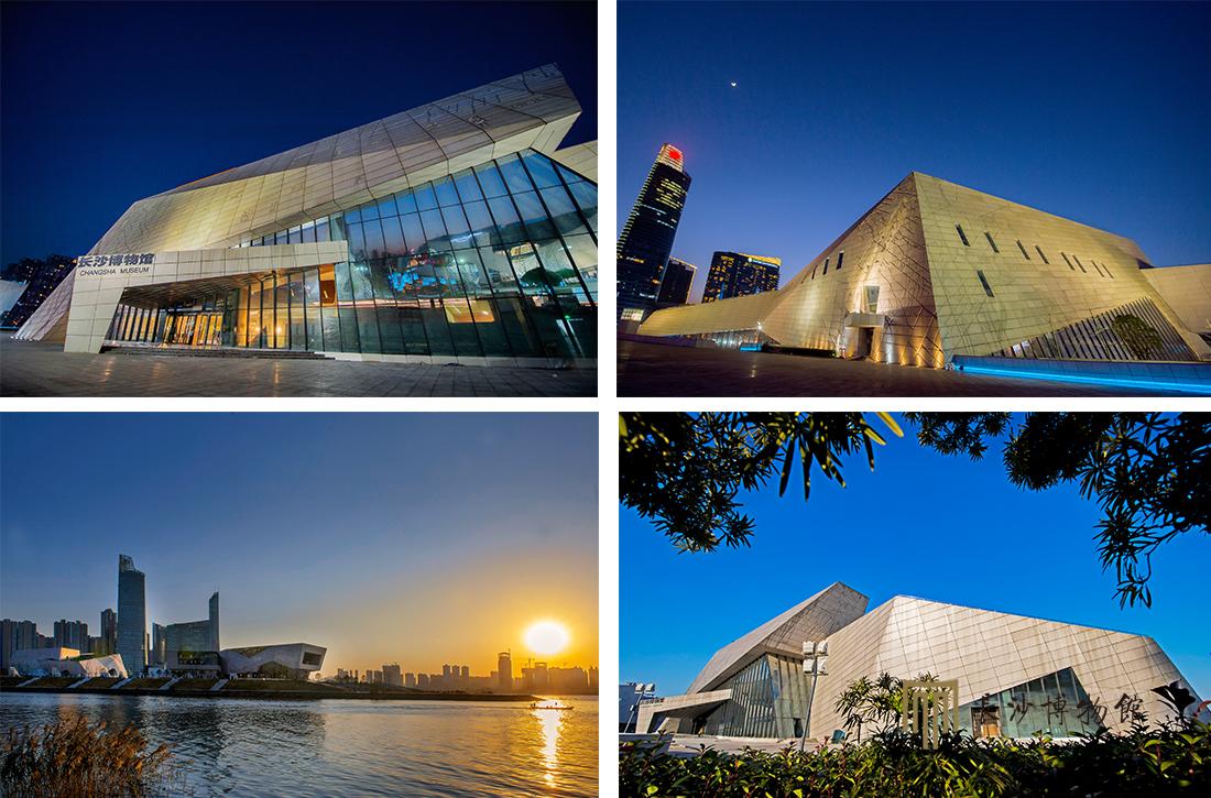 长沙市开福区北辰三角洲的“三馆一厅”夜景美轮美奂。位于长沙市滨江文化园场馆建设、绿化工程已经基本完工。